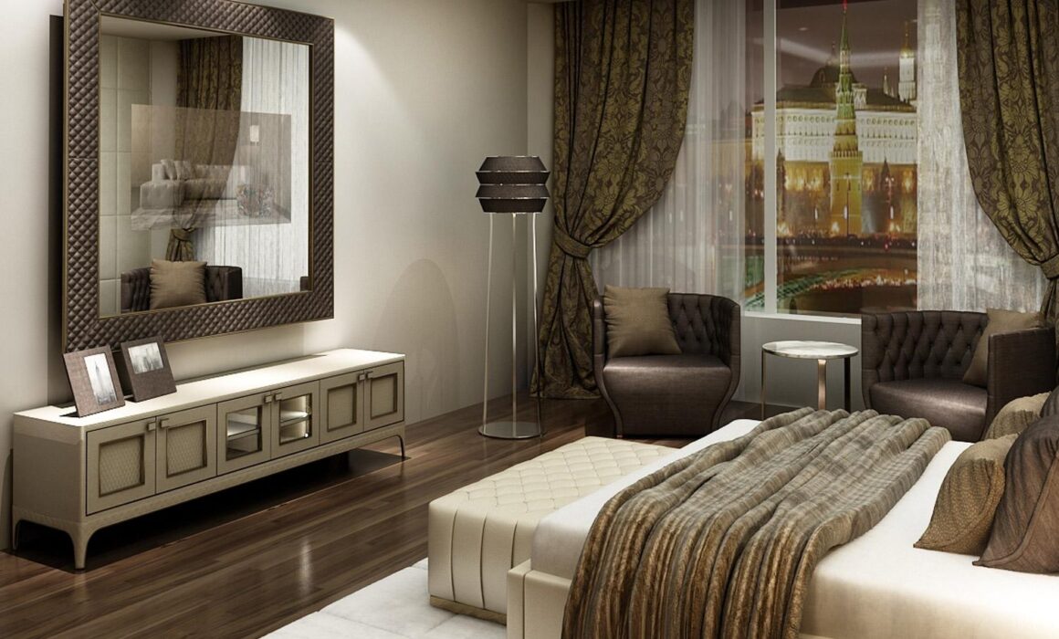 Sophisticated design and smooth lines by a more classical inspiration merge perfectly thanks the skilful use of the best quality materials like leather, bronze, velvet, massive wood, hand-painted wood, Emperador marble, linen, Swarovski crystals.